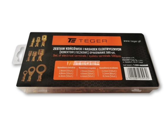 Zestaw końcówek i nasadek elektrycznych konektory / oczkowe TEGER